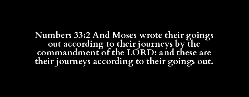 Numbers 33:2 And Moses wrote their goings out according to their journeys by the commandment of the LORD: and these are their journeys according to their goings out.