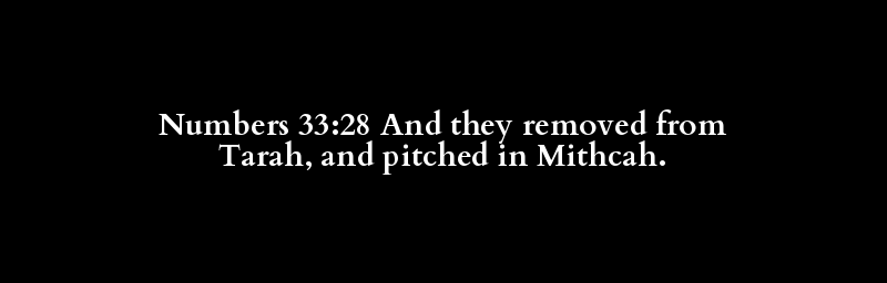 Numbers 33:28 And they removed from Tarah, and pitched in Mithcah.