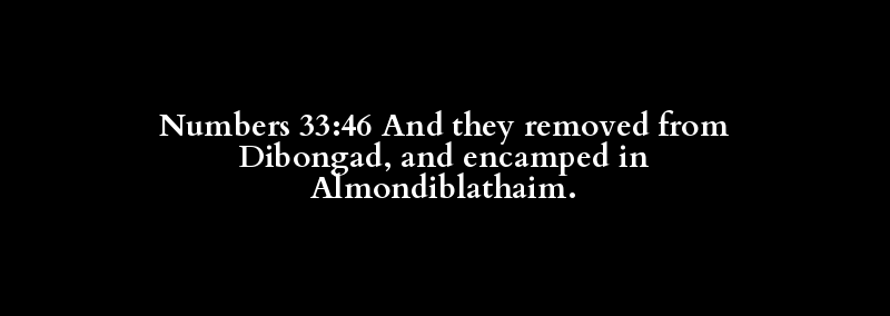 Numbers 33:46 And they removed from Dibongad, and encamped in Almondiblathaim.