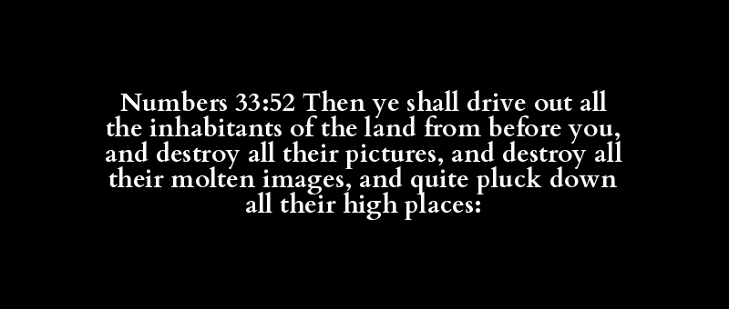 Numbers 33:52 Then ye shall drive out all the inhabitants of the land from before you, and destroy all their pictures, and destroy all their molten images, and quite pluck down all their high places: