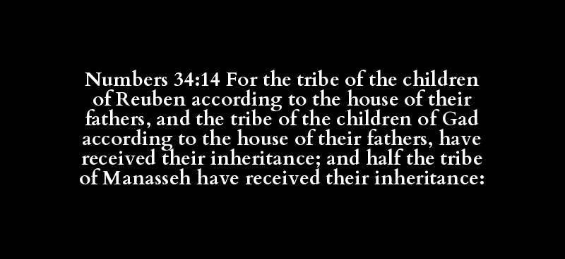 Numbers 34:14 For the tribe of the children of Reuben according to the house of their fathers, and the tribe of the children of Gad according to the house of their fathers, have received their inheritance; and half the tribe of Manasseh have received their inheritance:
