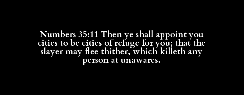Numbers 35:11 Then ye shall appoint you cities to be cities of refuge for you; that the slayer may flee thither, which killeth any person at unawares.