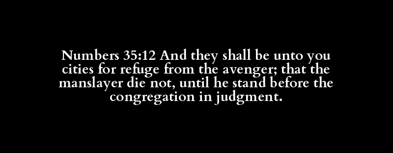 Numbers 35:12 And they shall be unto you cities for refuge from the avenger; that the manslayer die not, until he stand before the congregation in judgment.