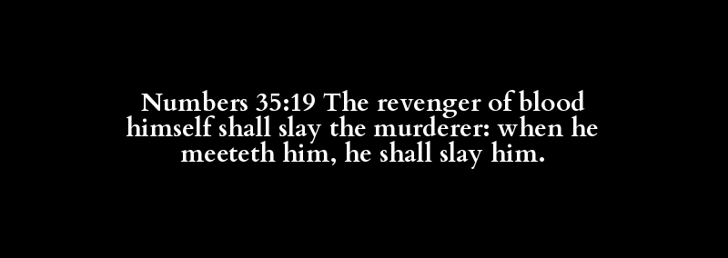 Numbers 35:19 The revenger of blood himself shall slay the murderer: when he meeteth him, he shall slay him.