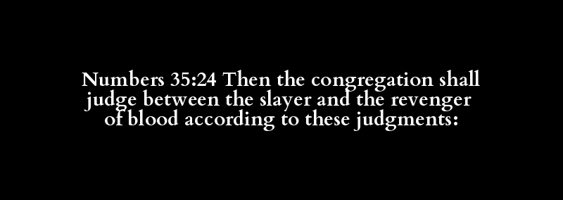 Numbers 35:24 Then the congregation shall judge between the slayer and the revenger of blood according to these judgments:
