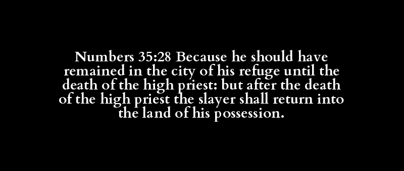 Numbers 35:28 Because he should have remained in the city of his refuge until the death of the high priest: but after the death of the high priest the slayer shall return into the land of his possession.