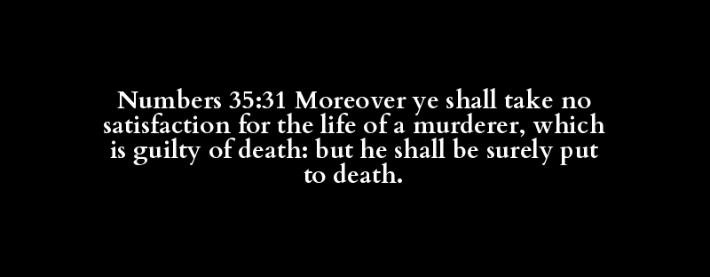 Numbers 35:31 Moreover ye shall take no satisfaction for the life of a murderer, which is guilty of death: but he shall be surely put to death.