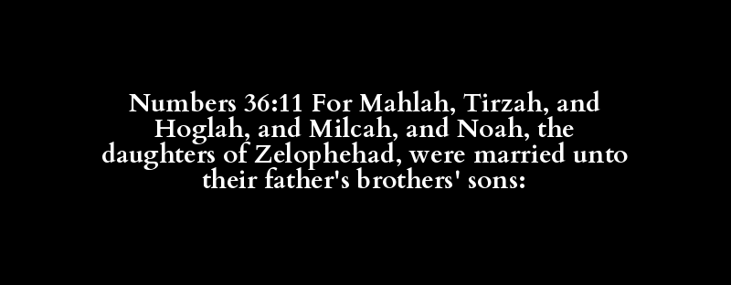 Numbers 36:11 For Mahlah, Tirzah, and Hoglah, and Milcah, and Noah, the daughters of Zelophehad, were married unto their father's brothers' sons: