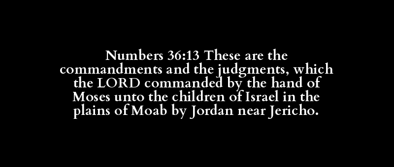 Numbers 36:13 These are the commandments and the judgments, which the LORD commanded by the hand of Moses unto the children of Israel in the plains of Moab by Jordan near Jericho.
