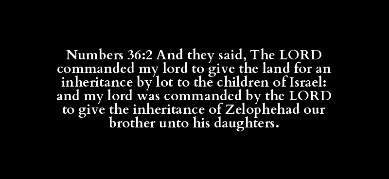 Numbers 36:2 And they said, The LORD commanded my lord to give the land for an inheritance by lot to the children of Israel: and my lord was commanded by the LORD to give the inheritance of Zelophehad our brother unto his daughters.