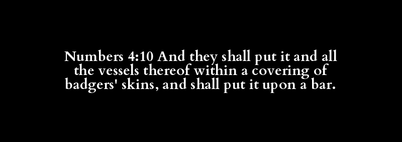 Numbers 4:10 And they shall put it and all the vessels thereof within a covering of badgers' skins, and shall put it upon a bar.