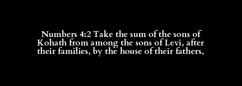 Numbers 4:2 Take the sum of the sons of Kohath from among the sons of Levi, after their families, by the house of their fathers,