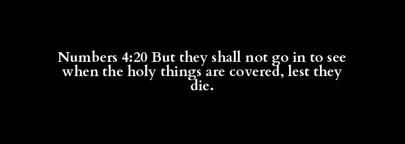 Numbers 4:20 But they shall not go in to see when the holy things are covered, lest they die.