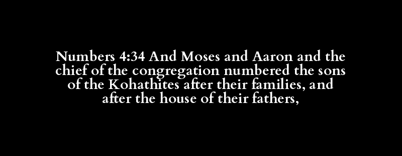 Numbers 4:34 And Moses and Aaron and the chief of the congregation numbered the sons of the Kohathites after their families, and after the house of their fathers,