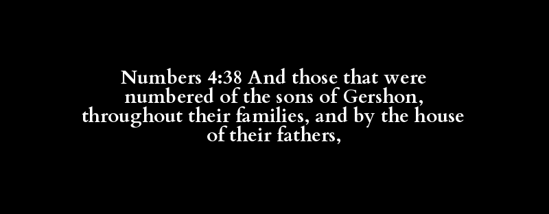 Numbers 4:38 And those that were numbered of the sons of Gershon, throughout their families, and by the house of their fathers,