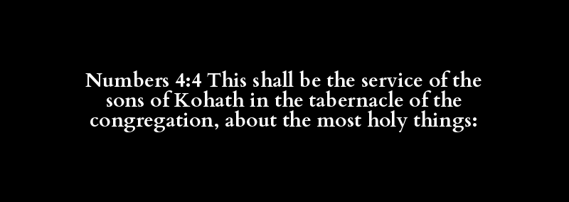Numbers 4:4 This shall be the service of the sons of Kohath in the tabernacle of the congregation, about the most holy things: