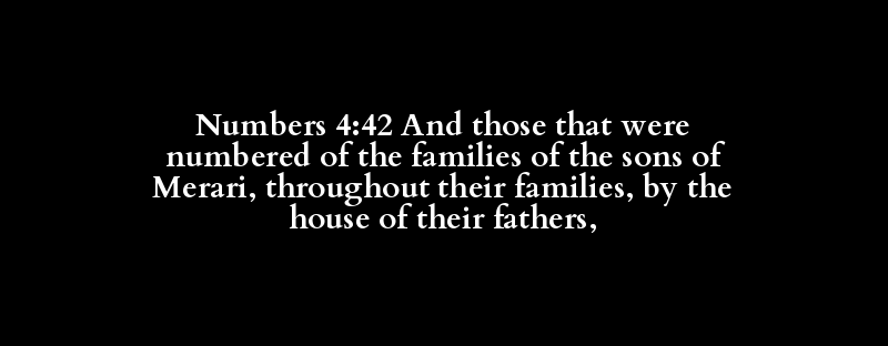 Numbers 4:42 And those that were numbered of the families of the sons of Merari, throughout their families, by the house of their fathers,