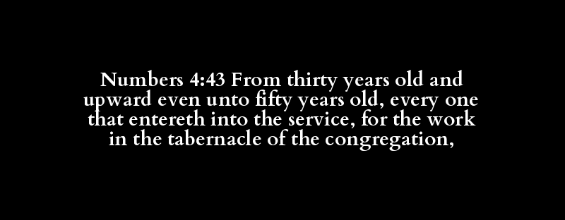 Numbers 4:43 From thirty years old and upward even unto fifty years old, every one that entereth into the service, for the work in the tabernacle of the congregation,