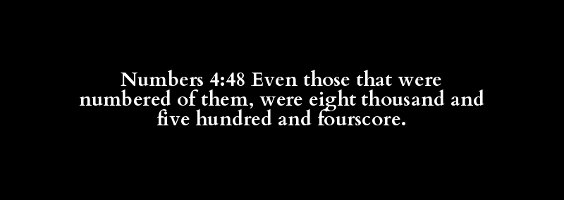 Numbers 4:48 Even those that were numbered of them, were eight thousand and five hundred and fourscore.