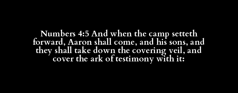 Numbers 4:5 And when the camp setteth forward, Aaron shall come, and his sons, and they shall take down the covering veil, and cover the ark of testimony with it: