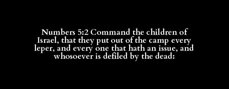 Numbers 5:2 Command the children of Israel, that they put out of the camp every leper, and every one that hath an issue, and whosoever is defiled by the dead: