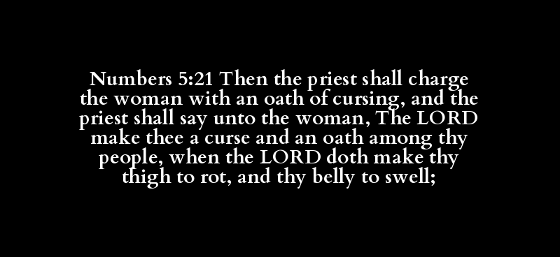 Numbers 5:21 Then the priest shall charge the woman with an oath of cursing, and the priest shall say unto the woman, The LORD make thee a curse and an oath among thy people, when the LORD doth make thy thigh to rot, and thy belly to swell;