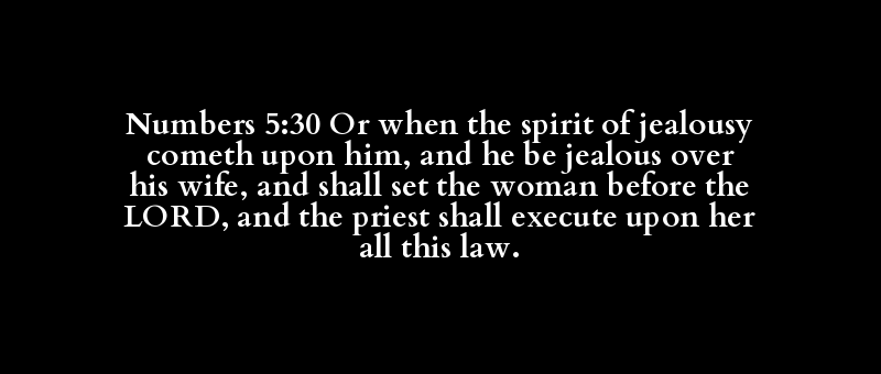 Numbers 5:30 Or when the spirit of jealousy cometh upon him, and he be jealous over his wife, and shall set the woman before the LORD, and the priest shall execute upon her all this law.