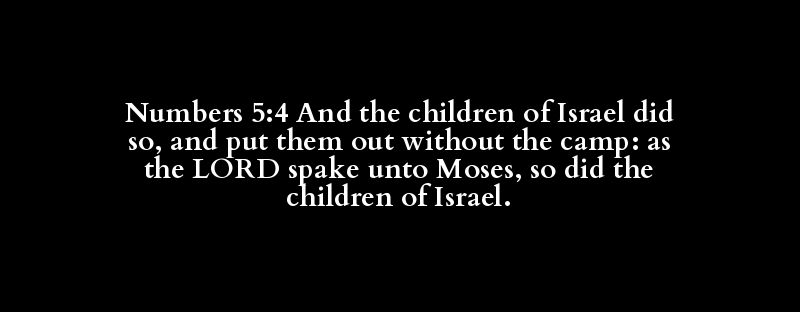 Numbers 5:4 And the children of Israel did so, and put them out without the camp: as the LORD spake unto Moses, so did the children of Israel.
