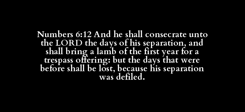 Numbers 6:12 And he shall consecrate unto the LORD the days of his separation, and shall bring a lamb of the first year for a trespass offering: but the days that were before shall be lost, because his separation was defiled.