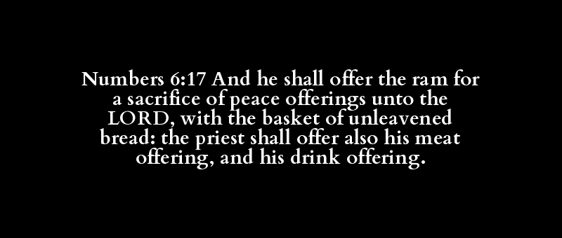Numbers 6:17 And he shall offer the ram for a sacrifice of peace offerings unto the LORD, with the basket of unleavened bread: the priest shall offer also his meat offering, and his drink offering.