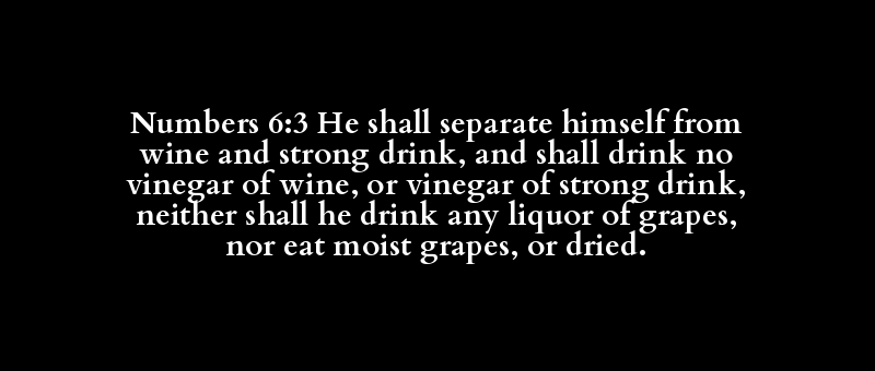 Numbers 6:3 He shall separate himself from wine and strong drink, and shall drink no vinegar of wine, or vinegar of strong drink, neither shall he drink any liquor of grapes, nor eat moist grapes, or dried.