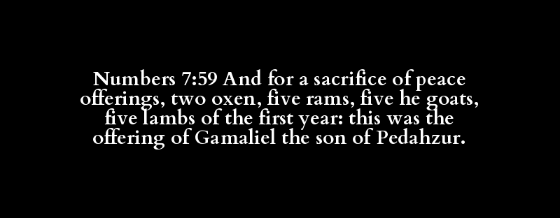 Numbers 7:59 And for a sacrifice of peace offerings, two oxen, five rams, five he goats, five lambs of the first year: this was the offering of Gamaliel the son of Pedahzur.