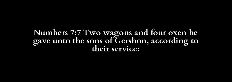 Numbers 7:7 Two wagons and four oxen he gave unto the sons of Gershon, according to their service: