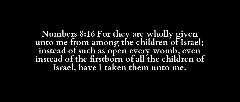 Numbers 8:16 For they are wholly given unto me from among the children of Israel; instead of such as open every womb, even instead of the firstborn of all the children of Israel, have I taken them unto me.