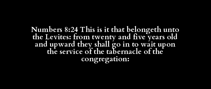 Numbers 8:24 This is it that belongeth unto the Levites: from twenty and five years old and upward they shall go in to wait upon the service of the tabernacle of the congregation: