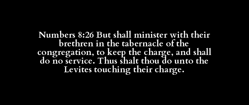 Numbers 8:26 But shall minister with their brethren in the tabernacle of the congregation, to keep the charge, and shall do no service. Thus shalt thou do unto the Levites touching their charge.