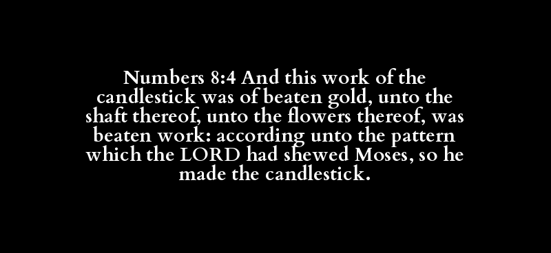 Numbers 8:4 And this work of the candlestick was of beaten gold, unto the shaft thereof, unto the flowers thereof, was beaten work: according unto the pattern which the LORD had shewed Moses, so he made the candlestick.