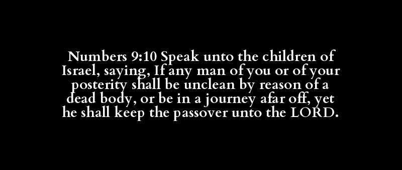 Numbers 9:10 Speak unto the children of Israel, saying, If any man of you or of your posterity shall be unclean by reason of a dead body, or be in a journey afar off, yet he shall keep the passover unto the LORD.