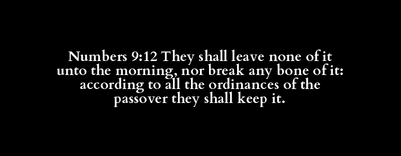 Numbers 9:12 They shall leave none of it unto the morning, nor break any bone of it: according to all the ordinances of the passover they shall keep it.