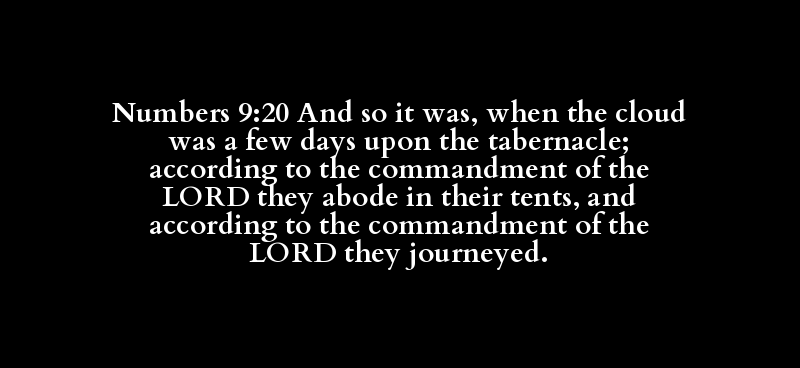 Numbers 9:20 And so it was, when the cloud was a few days upon the tabernacle; according to the commandment of the LORD they abode in their tents, and according to the commandment of the LORD they journeyed.
