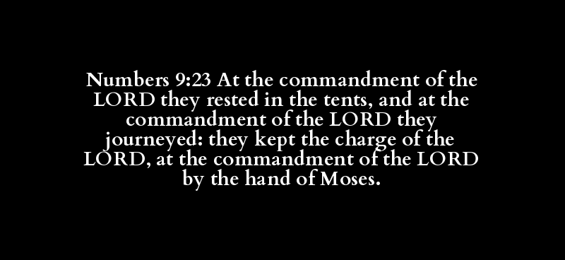 Numbers 9:23 At the commandment of the LORD they rested in the tents, and at the commandment of the LORD they journeyed: they kept the charge of the LORD, at the commandment of the LORD by the hand of Moses.