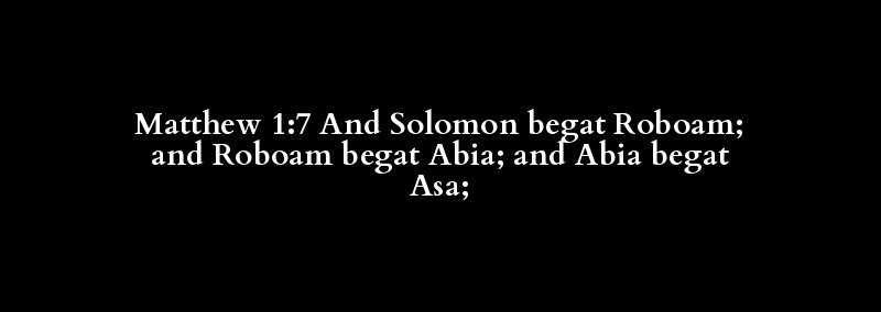| also, and, but, moreover, now | Solomon | bear, beget, be born, bring forth, con.. | Roboam | also, and, but, moreover, now | Roboam | bear, beget, be born, bring forth, con.. | Abia | also, and, but, moreover, now | Abia | bear, beget, be born, bring forth, con.. | Asa |