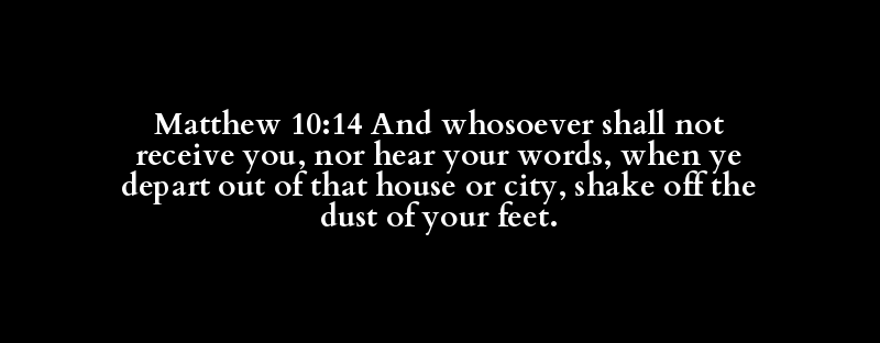 Matthew 10:14 And whosoever shall not receive you, nor hear your words, when ye depart out of that house or city, shake off the dust of your feet.