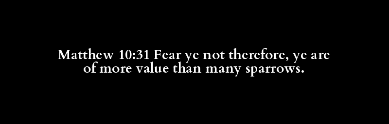 Matthew 10:31 Fear ye not therefore, ye are of more value than many sparrows.