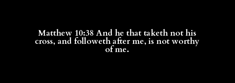 Matthew 10:38 And he that taketh not his cross, and followeth after me, is not worthy of me.