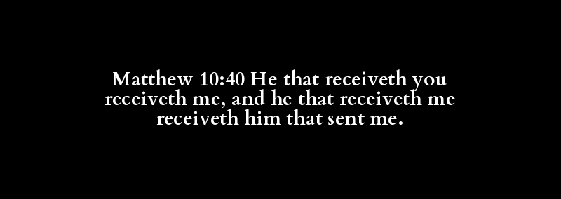 Matthew 10:40 He that receiveth you receiveth me, and he that receiveth me receiveth him that sent me.