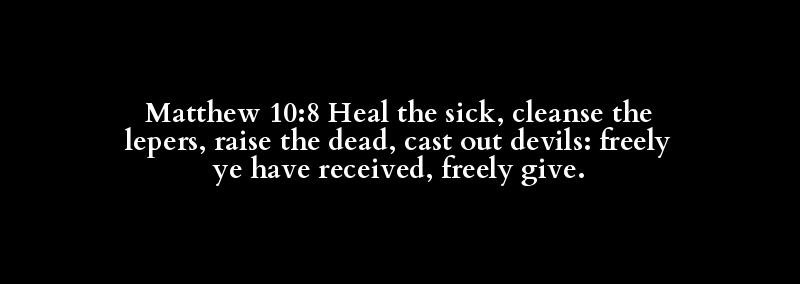Matthew 10:8 Heal the sick, cleanse the lepers, raise the dead, cast out devils: freely ye have received, freely give.