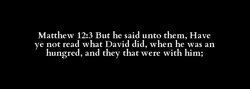 Matthew 12:3 But he said unto them, Have ye not read what David did, when he was an hungred, and they that were with him;