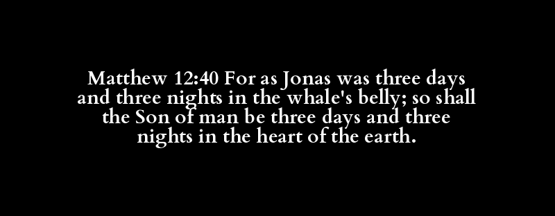 Matthew 12:40 For as Jonas was three days and three nights in the whale's belly; so shall the Son of man be three days and three nights in the heart of the earth.