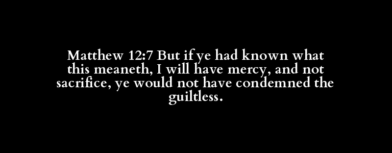 Matthew 12:7 But if ye had known what this meaneth, I will have mercy, and not sacrifice, ye would not have condemned the guiltless.